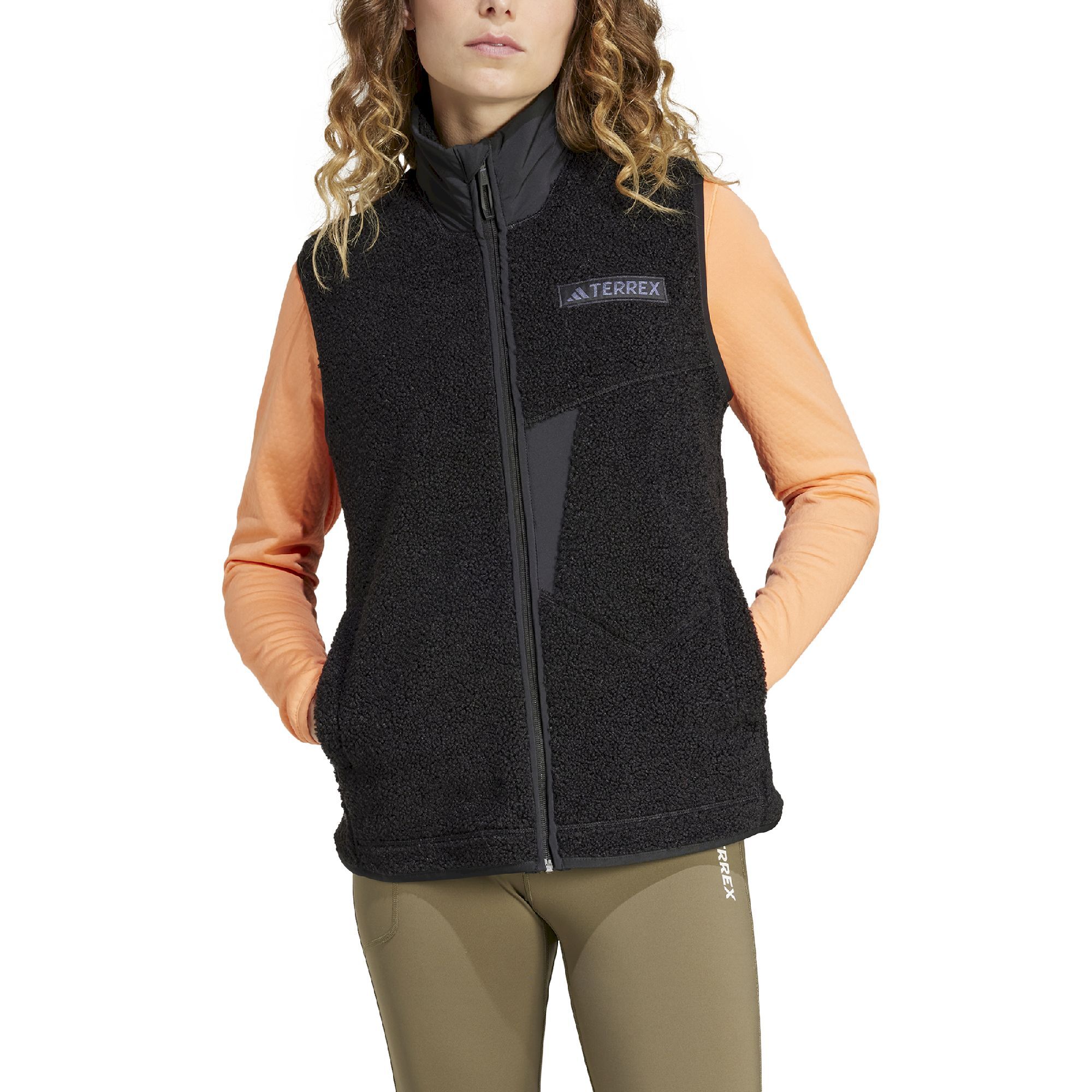 Midden in een herfstwandeling, wanneer de wind opsteekt en het pad zich ontvouwt onder een bewolkte hemel, wordt de Xploric HP Fleecevest je onmisbare bondgenoot. Deze mouwloze fleece voor dames, ontworpen door adidas Terrex, is gemaakt om je met comfort en stijl te vergezellen, of je nu de bergen verkent of door de straten van de stad loopt.